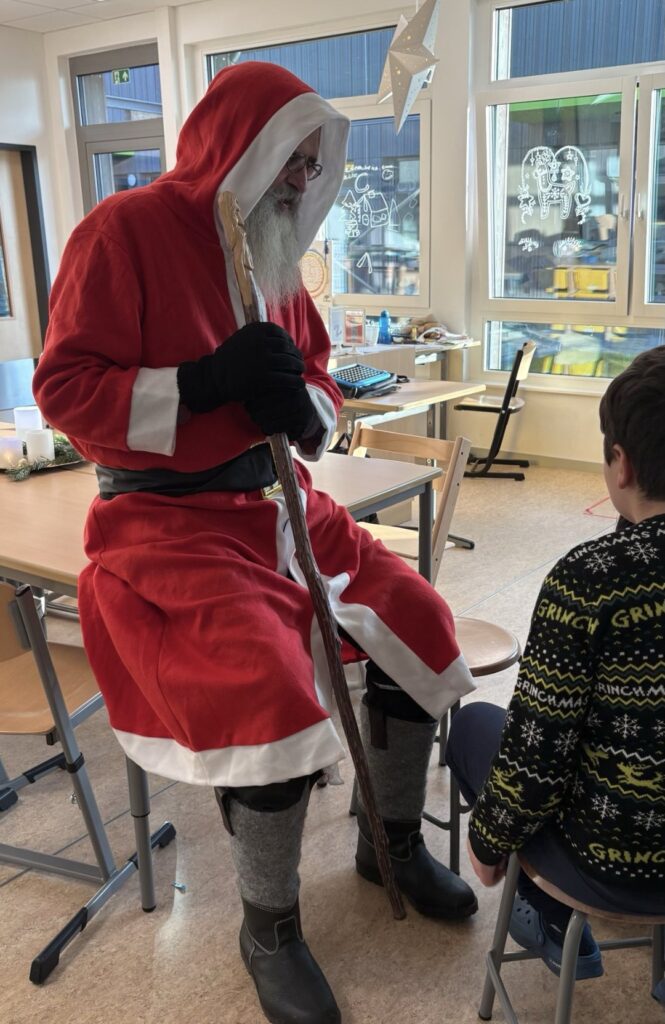 Der Weihnachtsmann hat sich ganz viel Zeit für uns genommen. Er war in jeder Klasse und hat mit den Kindern gesprochen und eine Kleinigkeit aus dem Geschenkesack gezaubert.